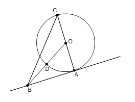 Since m<ABC = 55 and m<BAO = 90, then ABC is a right triangle whose angle measures sum to 180, m<BCO = 35.
