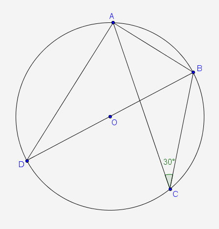 asked 03/12/21 is a diameter of circle O. If m∠ACB = 30°, what is m∠DBA?