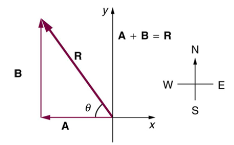 This becomes a trigonometry problem. If you have a right triangle with two sides known, then the third side can be found with the Pythagorean relationship. (a^2 + b^2 = c^2). In this case c, the hypotenuse, is the length of vector R. Thus, the magnitude is sqrt( 18^2 + 25^2 ) = 30.8 m.