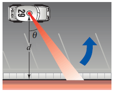 asked 02/01/22A patrol car is parked d = 60 feet from a long warehouse, as shown in the figure below. The revolving light on top of the car turns at a rate of 1/2 revolution per second. The rate at which the light beam moves along the wall is r = 60𝜋 sec2 𝜃